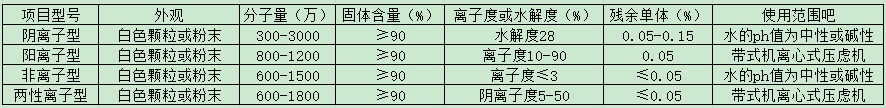 根據(jù)需要,聚丙烯酰胺可以由非離子型加工成陰離子、陽離子和陰、陽混合離子而形成四種類型產(chǎn)品。